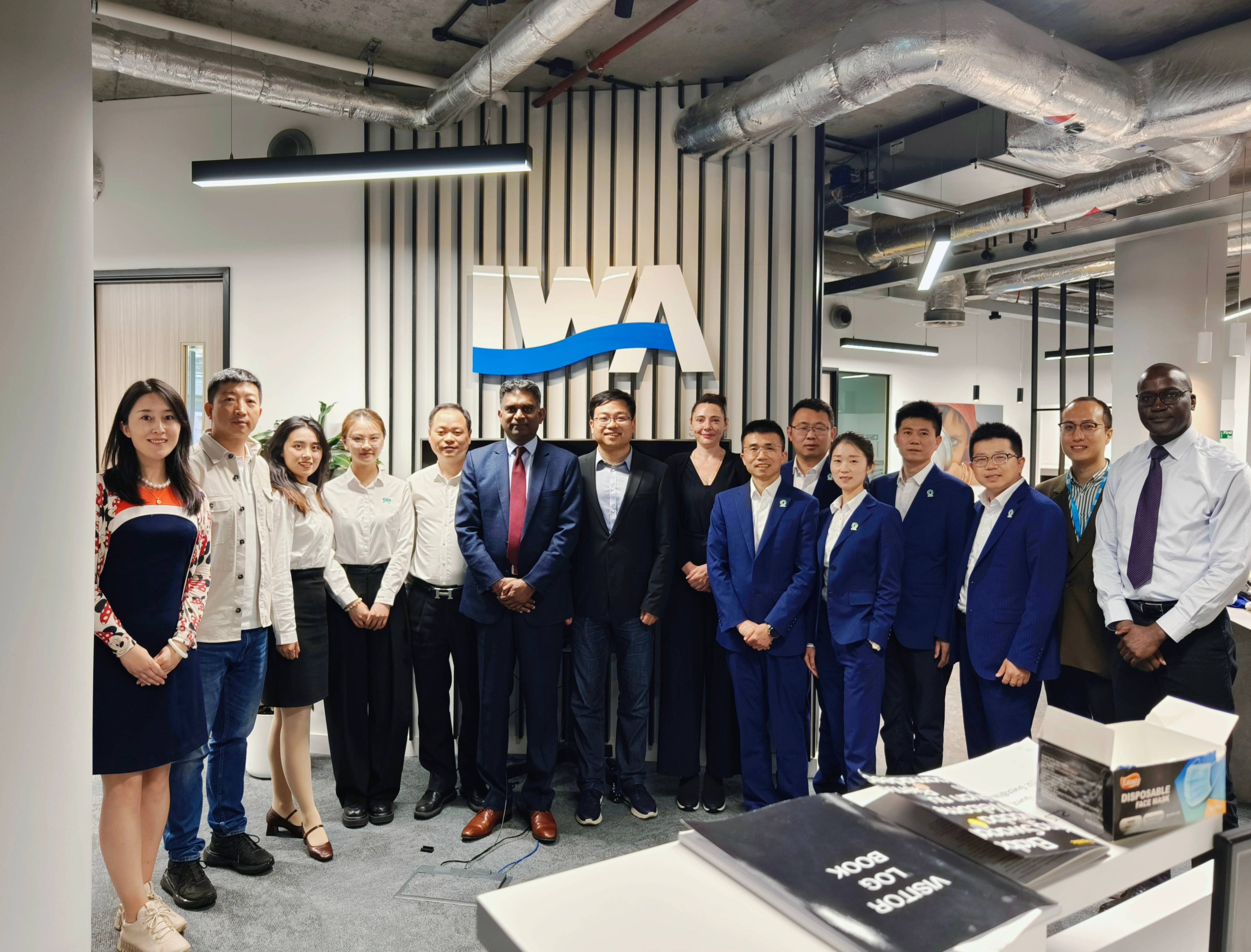国际水协CEO Kalanithy Vairavamoorthy、全球活动总监Kizito Masinde、企业会员总监Kerrie Dyer、会员主任Will (Chenhao) Xie等成员接待了考察团一行。