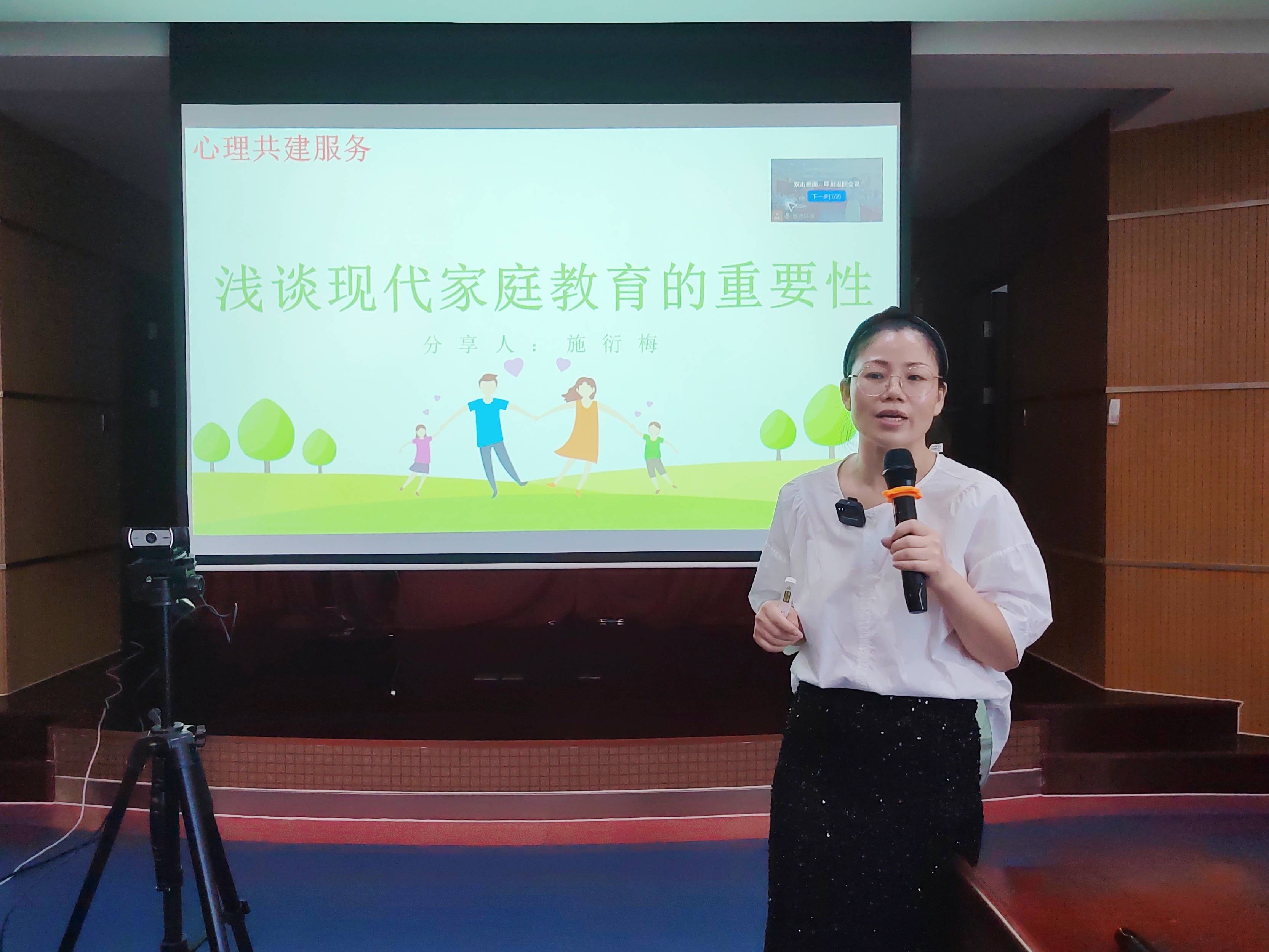 施衍梅老师从重视家庭建设、注重家庭、注重家教、注重家风等方面出发,用生动的案例、深入浅出地分析了建设家庭教育的重要意义,就如何建立学习型家庭秘籍,未来家庭构建蓝图,如何扮演有益于孩子成长的角色以及如何经营好家庭等内容进行传授。