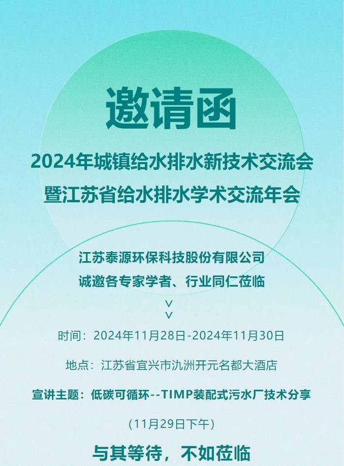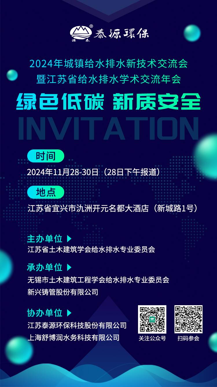 【您有一封邀请函】2024年城镇给水排水新技术交流会暨江苏省给水排水学术交流年会,英国正版365邀您共赴!