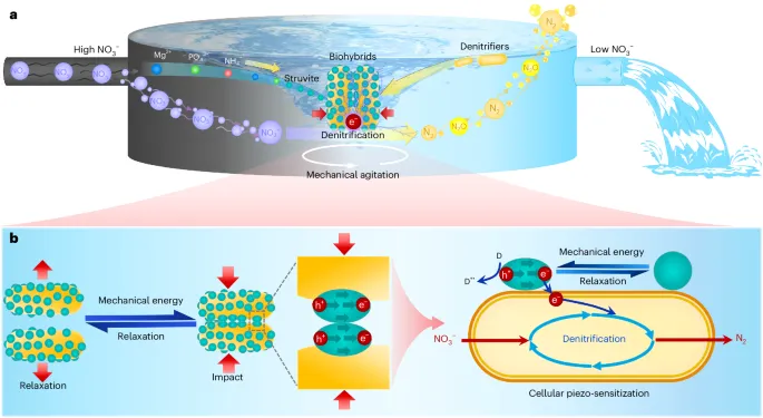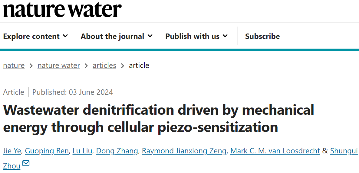 日前,相关论文以《机械能驱动的废水反硝化作用》(Wastewater denitrification driven by mechanical energy through cellular piezo-sensitization)为题发在Nature Water【1】。