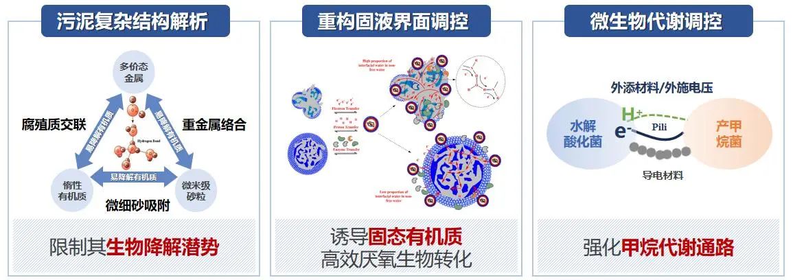 团队通过对污泥复杂结构解析,揭示了污泥生物抗降解机制,突破了重构固液界面、诱导电子-质子传递新原理,率先提出了污泥高含固厌氧消化理论,创建了污泥高级厌氧消化增效调控理论体系。